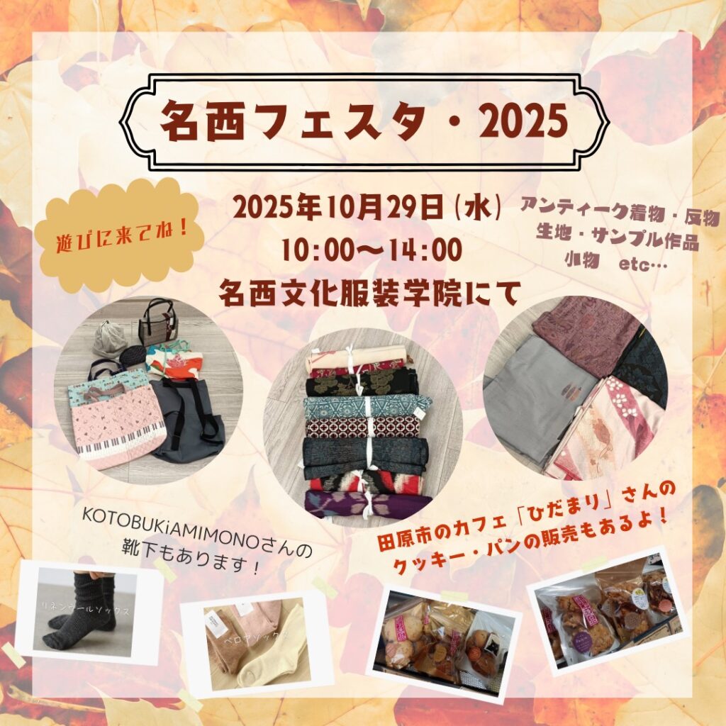 名西文化服装学院は昭和21年、名古屋市西区で【和裁】【洋裁】【着付】の総合服装学校として誕生しました。現在では着物から洋服へのリフォーム『リライブきもの』をはじめ、キッズ裁縫・小物クラフトなど、気軽に始められる講座も用意しております。簡単に着付のできるオリジナル着物『貴都流(きどる)』の紹介も行っております。 また、オーダー部門として着物全般お仕立て、洋服オーダー・リフォーム、着付(出張可)も行っております。