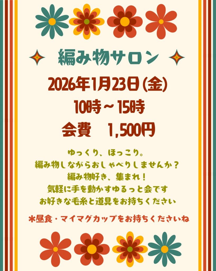 編み物サロン開催!1月23日